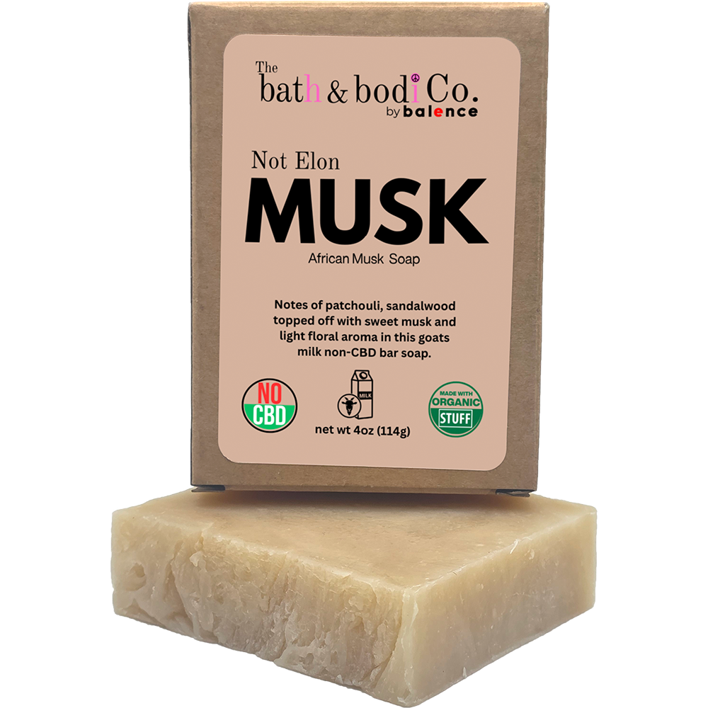 Smell rich, warm, and a little mysterious with Not Elon MUSK, our handcrafted African Musk goat milk bar soap. This bold, smooth scent blends patchouli, sandalwood, sweet musk, and soft floral notes for a clean that feels earthy, sexy, and just the right amount of extra. Made with goat milk for a creamy, skin-loving lather, this non-CBD bar soap turns your daily wash into a whole vibe.