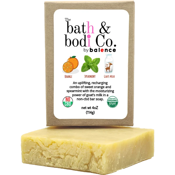 An uplifting, recharging combo of sweet orange and spearmint with the moisturizing power of goat’s milk in a non-cbd bar soap. Lather up with our chemical-free handmade signature Non-CBD bar soaps, made with pure skin-loving organic ingredients and with no harsh chemicals!