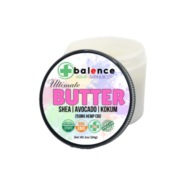 CBD isolate helps soothe and balance skin while shea, avocado, and kokum butters deliver luxurious, lasting moisture.